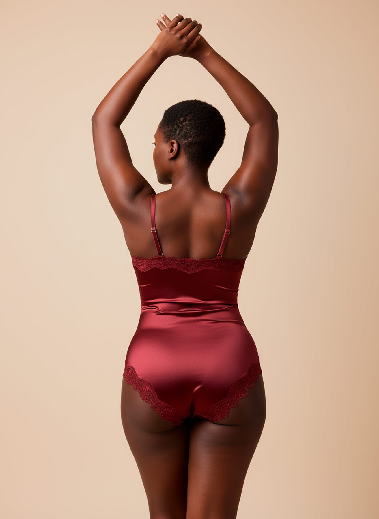 Der rote Erica Bodystocking aus weichem Stretch-Satin bietet höchsten Tragekomfort. Dieser klassische Bodystocking besticht durch eine zarte Spitzenborte, die ihm eine feminine und romantische Note verleiht. Die herausnehmbaren Polster sorgen für individuell anpassbaren Komfort. Kombinieren Sie ihn mit dem Erica String oder dem Erica Slip für ein komplettes Set.